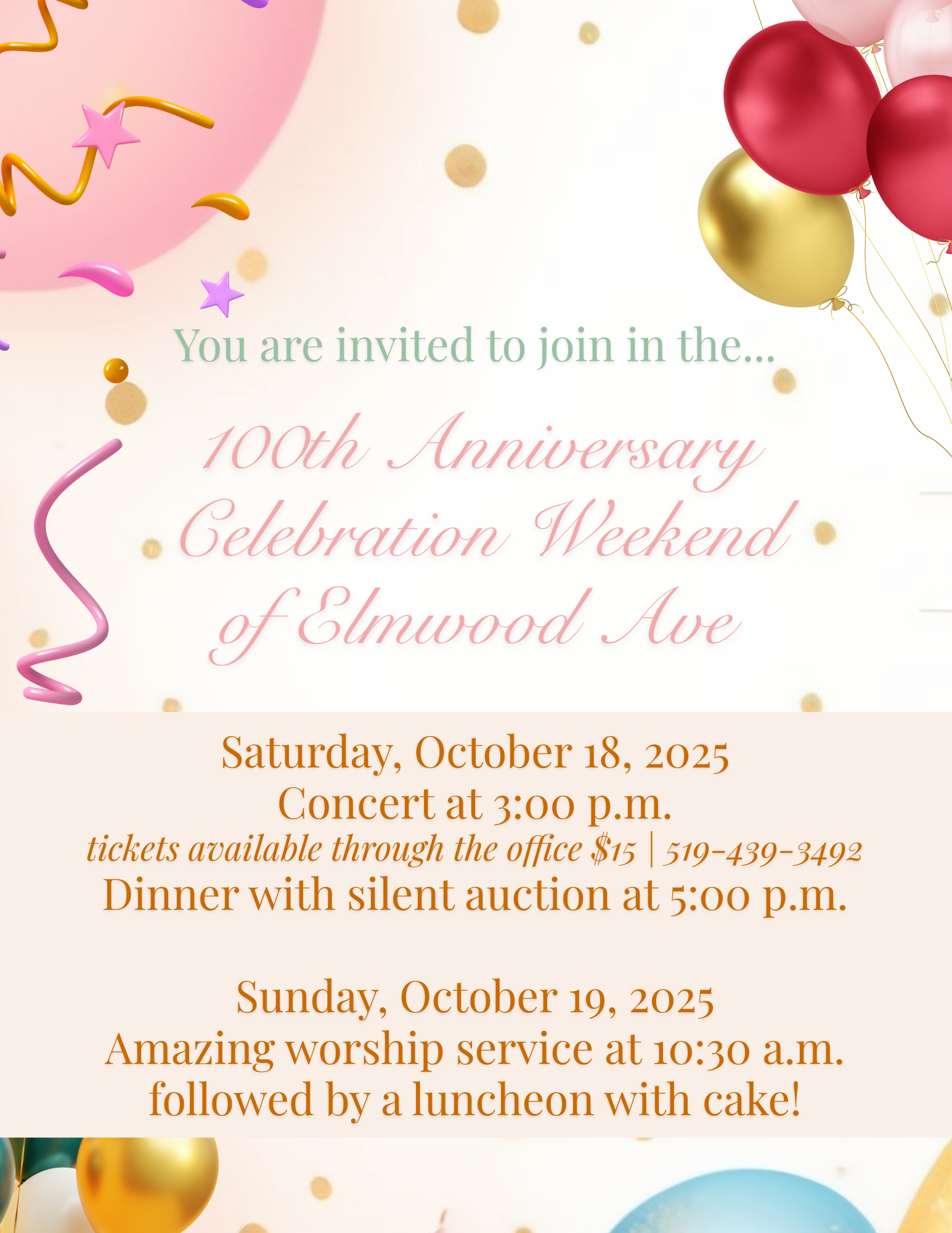 Let’s make this milestone year one we’ll cherish forever. Please share these details with former members and friends - we’d love to see as many familiar faces as possible! Please bring in your memorable photos any Sunday to add to our bulletin board as well.